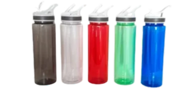 Tomatodo de plástico PC (Policarbonato) de colores traslúcidos y tapa con cinta de color metálico. Capacidad: 600 ml. Medidas: Altura: 23 cm. Diámetro: 6.5 cm. Tapa (Diámetro): 4.5 cm.